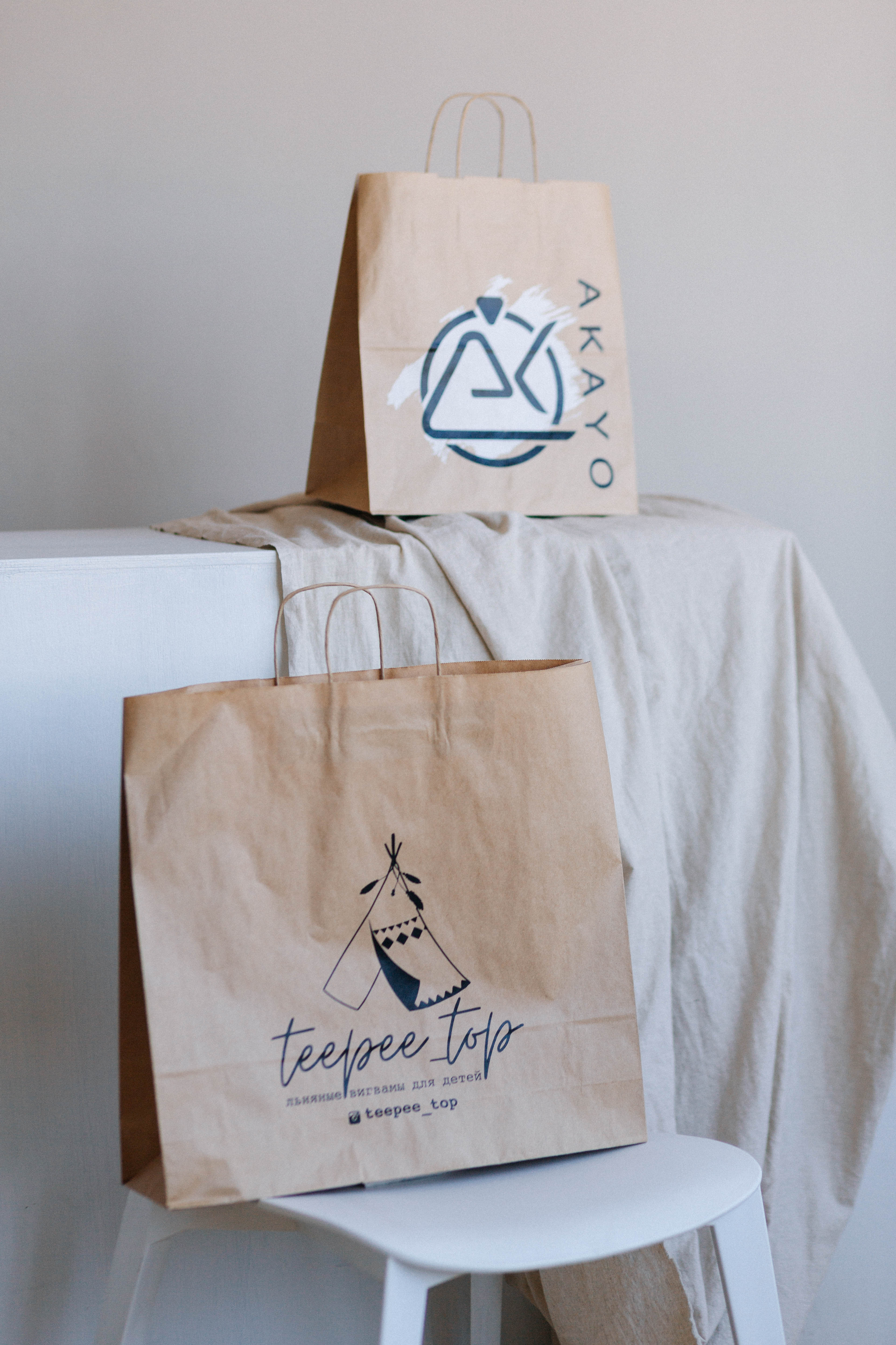 Бумажные пакеты с логотипом могут использоваться в качестве сумок-носителей для покупок и упаковки некоторых потребительских товаров.